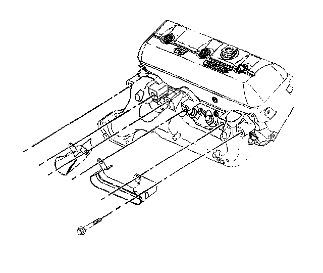 9. Remove the exhaust manifold with the exhaust manifold gaskets and the spark plug wire shields from the engine.