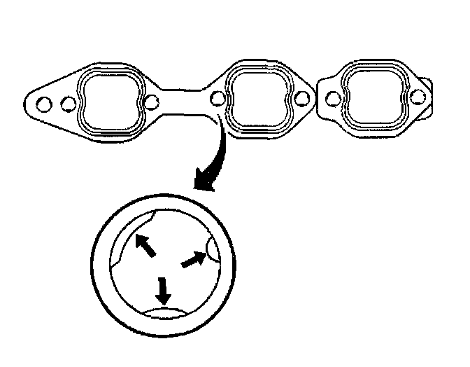 Important: To assist in installing the exhaust manifold to the engine, the tabs on a NEW exhaust manifold gasket will hold the gasket and the bolts in place.