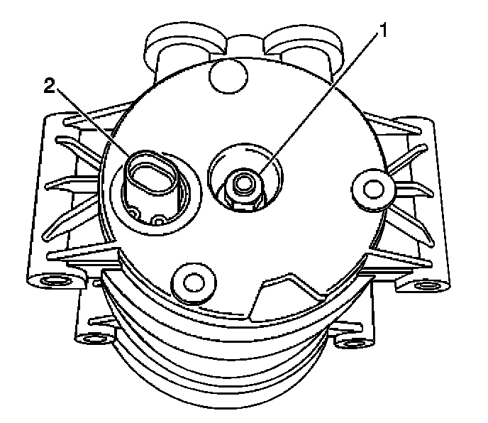 4. Disconnect the A/C high pressure switch electrical connector (2) from the compressor.