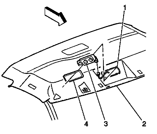 1. Remove the front control switch bezel (4) from the headliner.