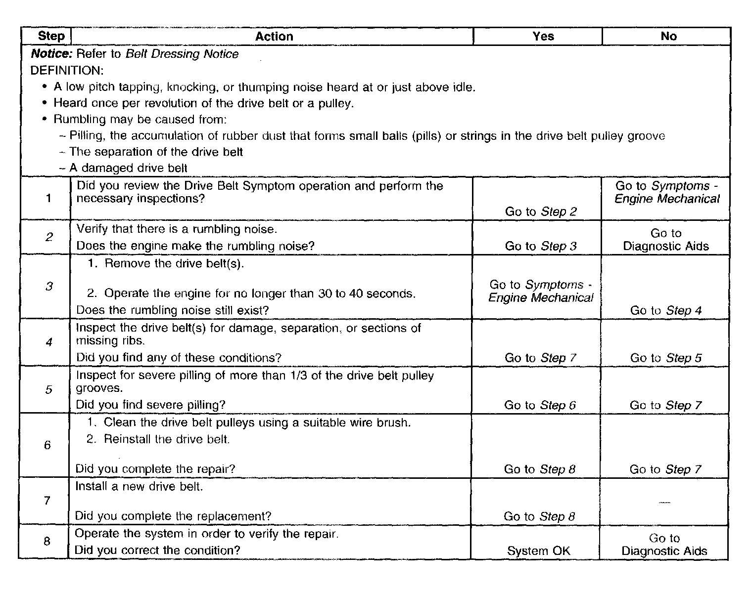 Drive Belt Rumbling DiagnosisDiagnostic Aids