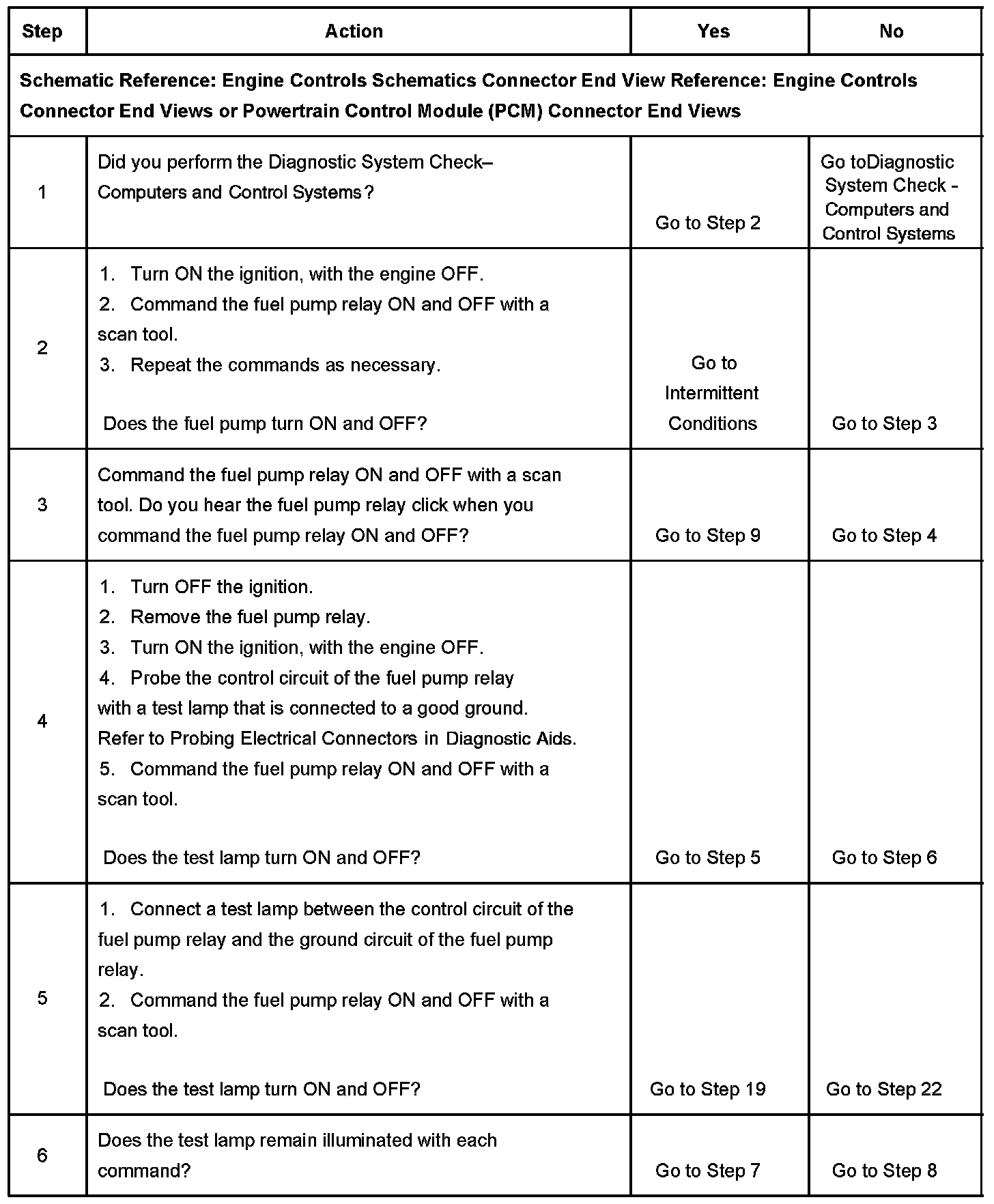 Fuel Pump Electrical Circuit Diagnosis
