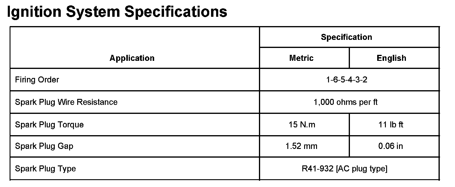 Ignition System Specifications:
