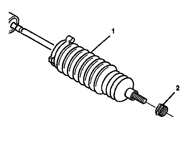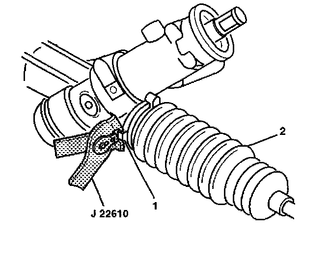7. Install the new boot clamp (2) onto the rack and pinion boot (1).