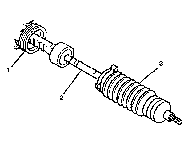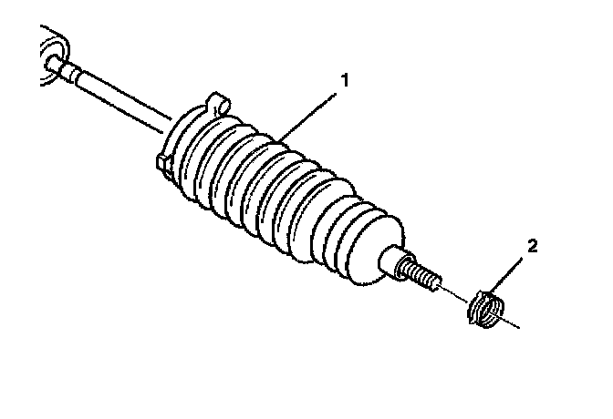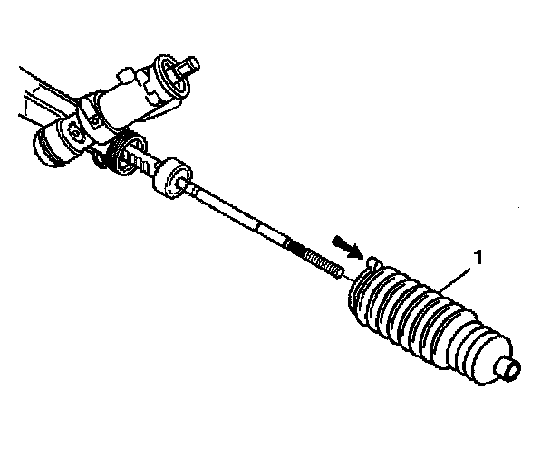1. Prior to the rack and pinion boot installation, apply grease to the inner tie rod (2) and the power steering gear ( 1).