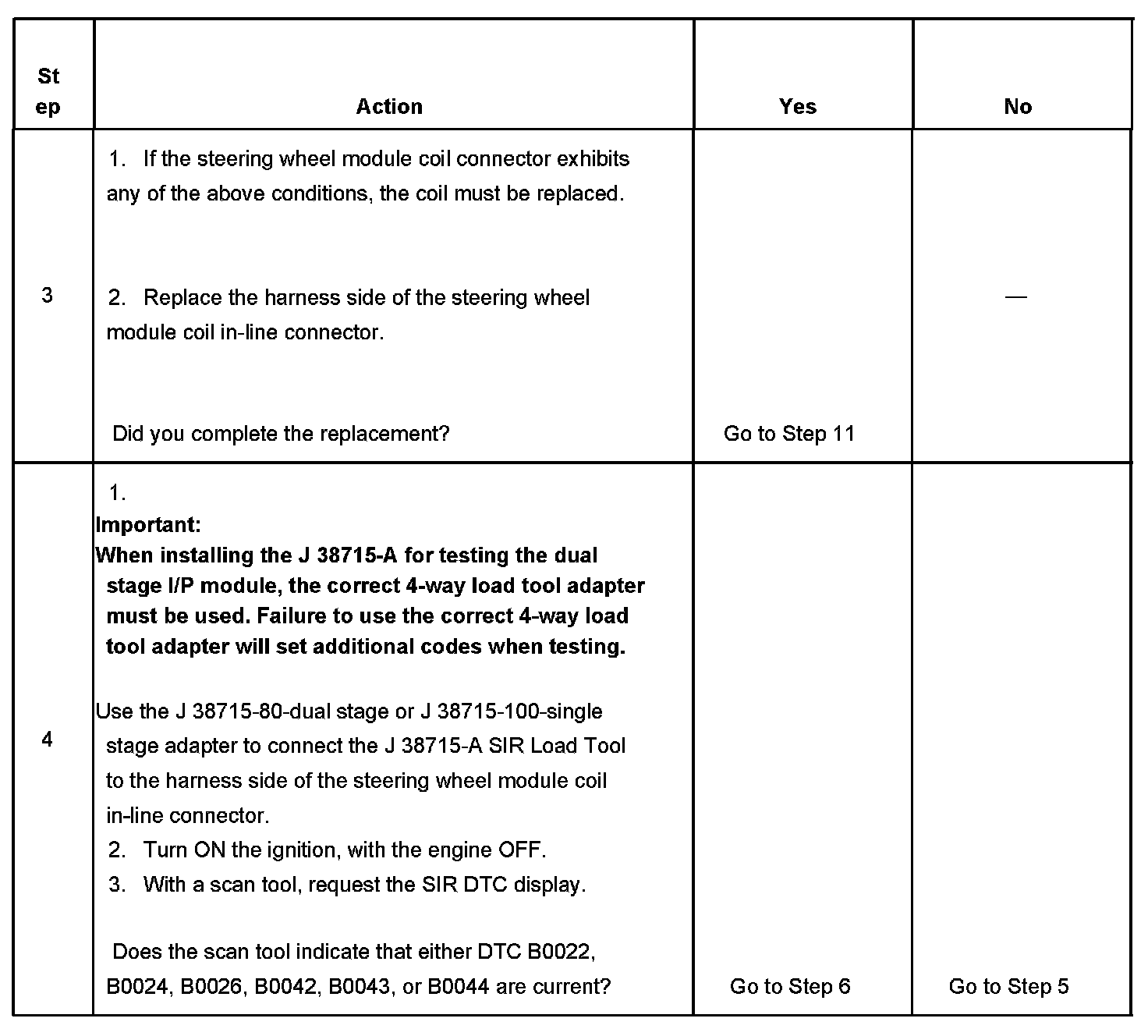 - DTC B0022-stage 1 or B0042-stage 2 will set when the steering wheel module deployment loop resistance is less than 1.3 ohms for 500 milliseconds.