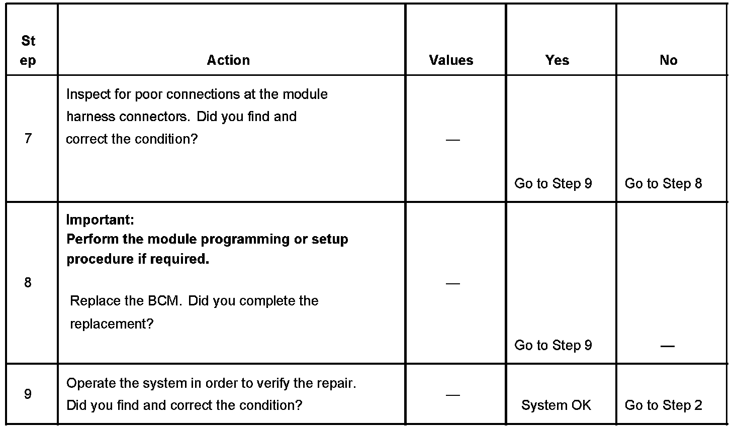 The BCM senses a battery voltage below or above the specified range of 9-16 volts.