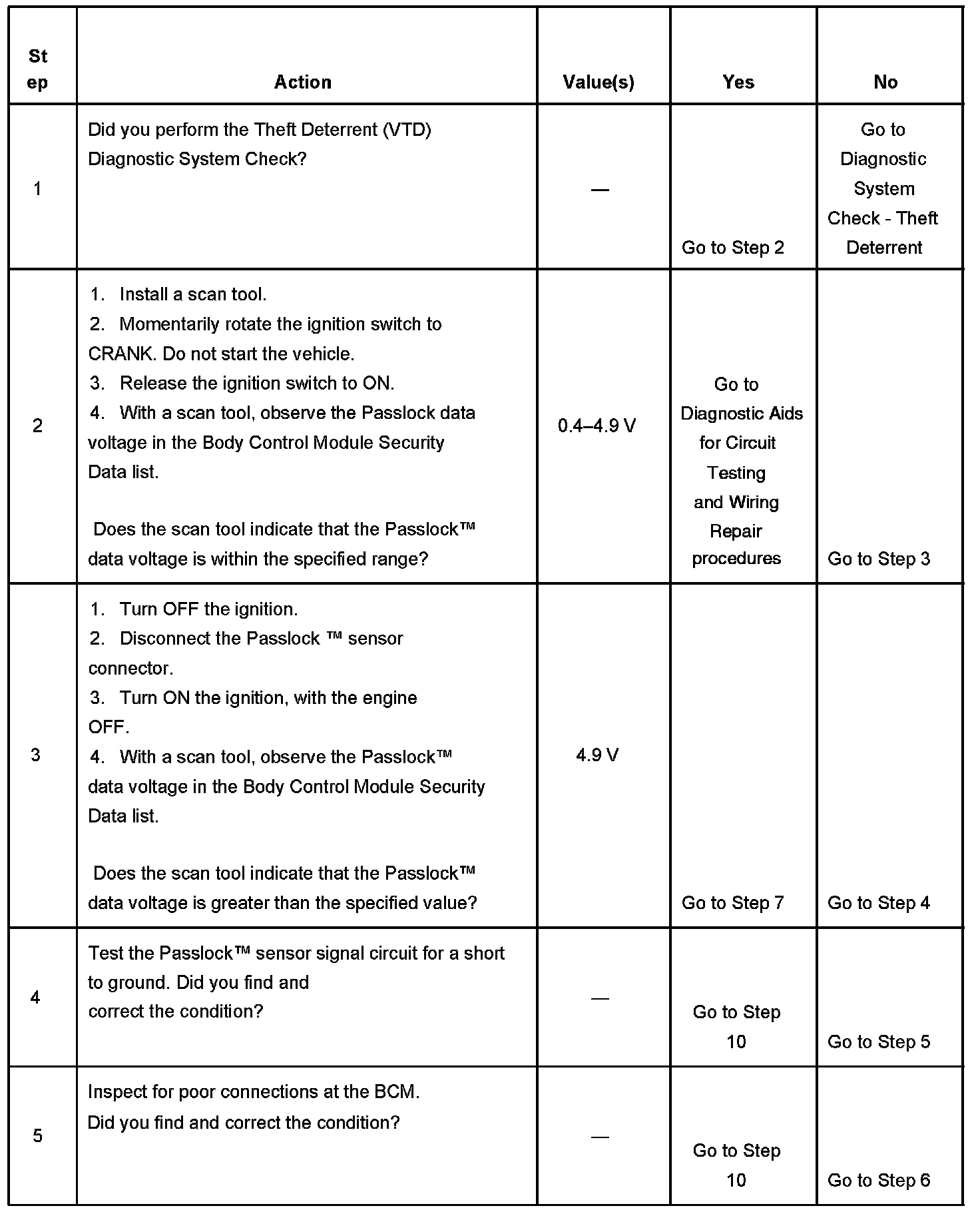 4. Tests for a short to ground in the Passlock(TM) sensor signal circuit.