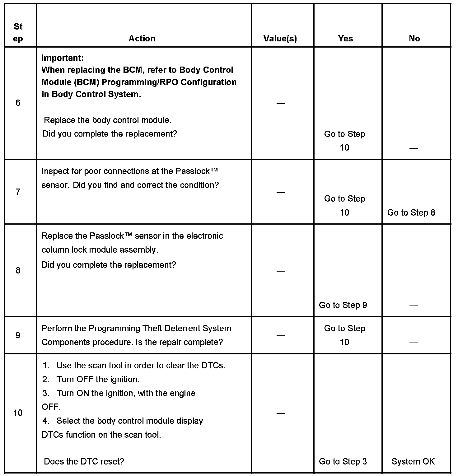 - Inspect the Passlock(TM) sensor harness for an intermittent or a short to ground.