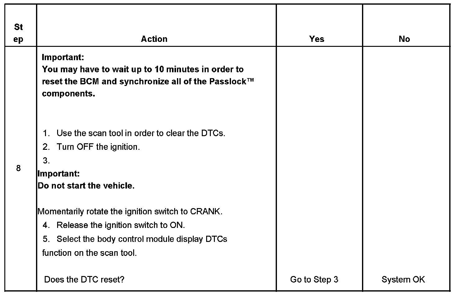 - The BCM is reading a tamper code from the Passlock(TM) sensor for longer than 1.0 seconds.
