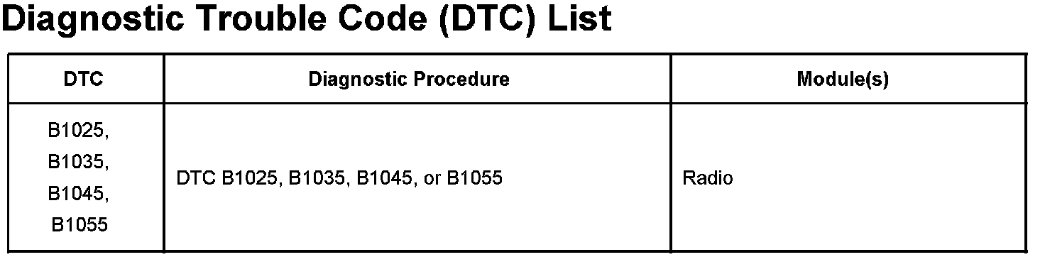 DTCs B1025 - B1055: