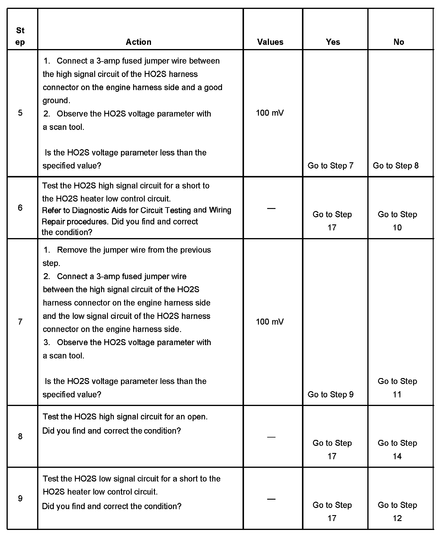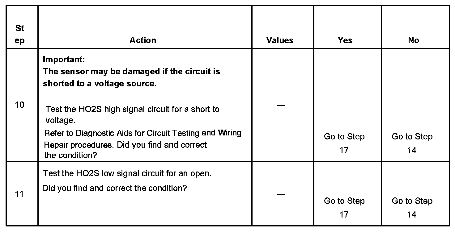 CIRCUIT DESCRIPTIONHeated oxygen sensors (HO2S) are used for fuel control and post catalyst monitoring. Each HO2S compares the oxygen content of the surrounding air with the oxygen content in the exhaust stream. The HO2S must reach operating temperature to provide an accurate voltage signal. Heating elements inside the HO2S minimize the time required for the sensors to reach operating temperature. The powertrain control module (PCM) supplies the HO2S with a reference, or bias, voltage of about 450 mV. When the engine is first started the PCM operates in open loop, ignoring the HO2S voltage signal. Once the HO2S reaches operating temperature and closed loop is achieved, the HO2S generates a voltage within a range of 0-1,000 mV that fluctuates above and below bias voltage. High HO2S voltage indicates a rich exhaust stream; low HO2S voltage indicates a lean exhaust stream. If the PCM detects an HO2S voltage that stays above a specified value, DTCs P0132 or P0152 will set.