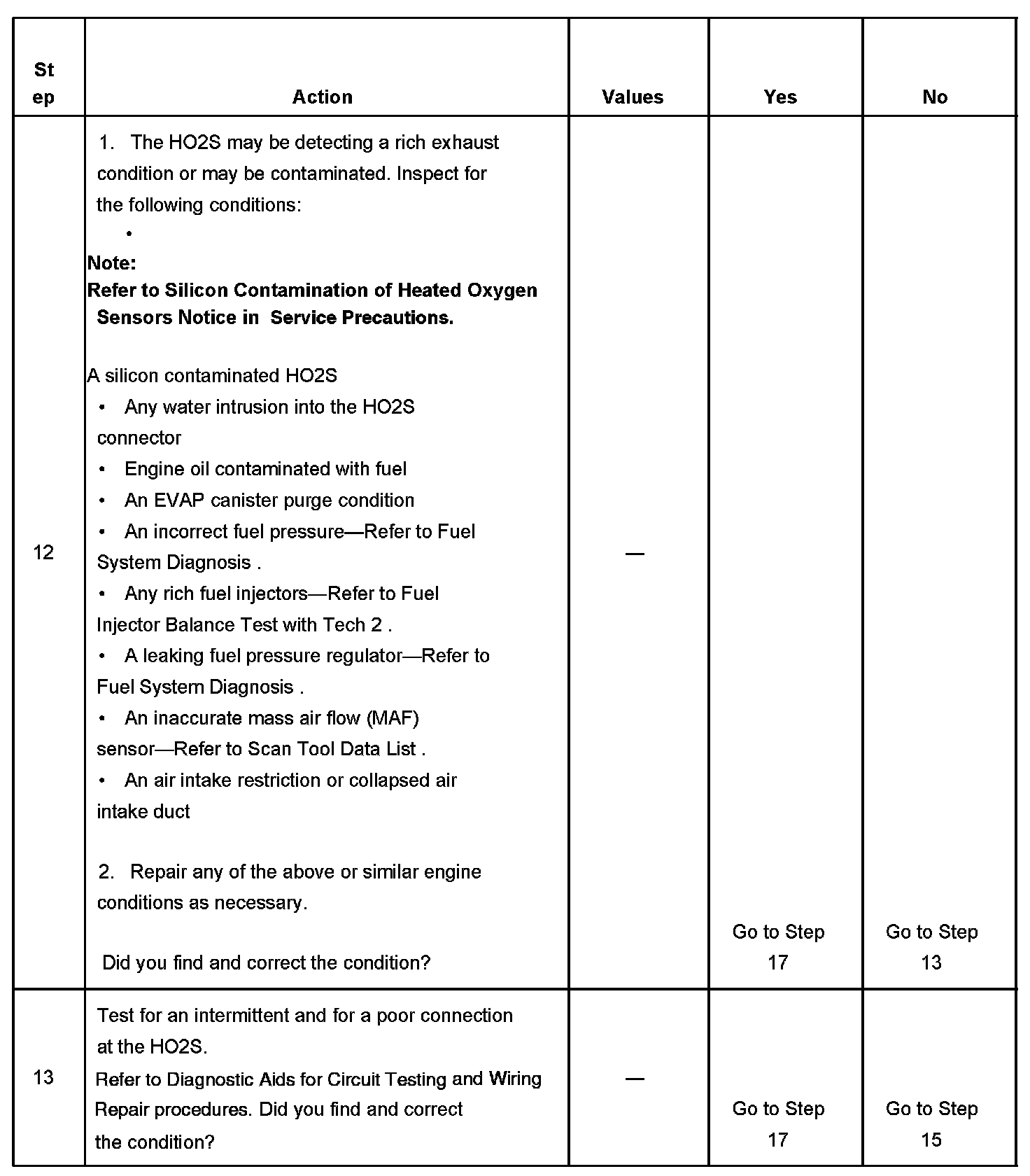 The number below refers to the step number on the diagnostic table.