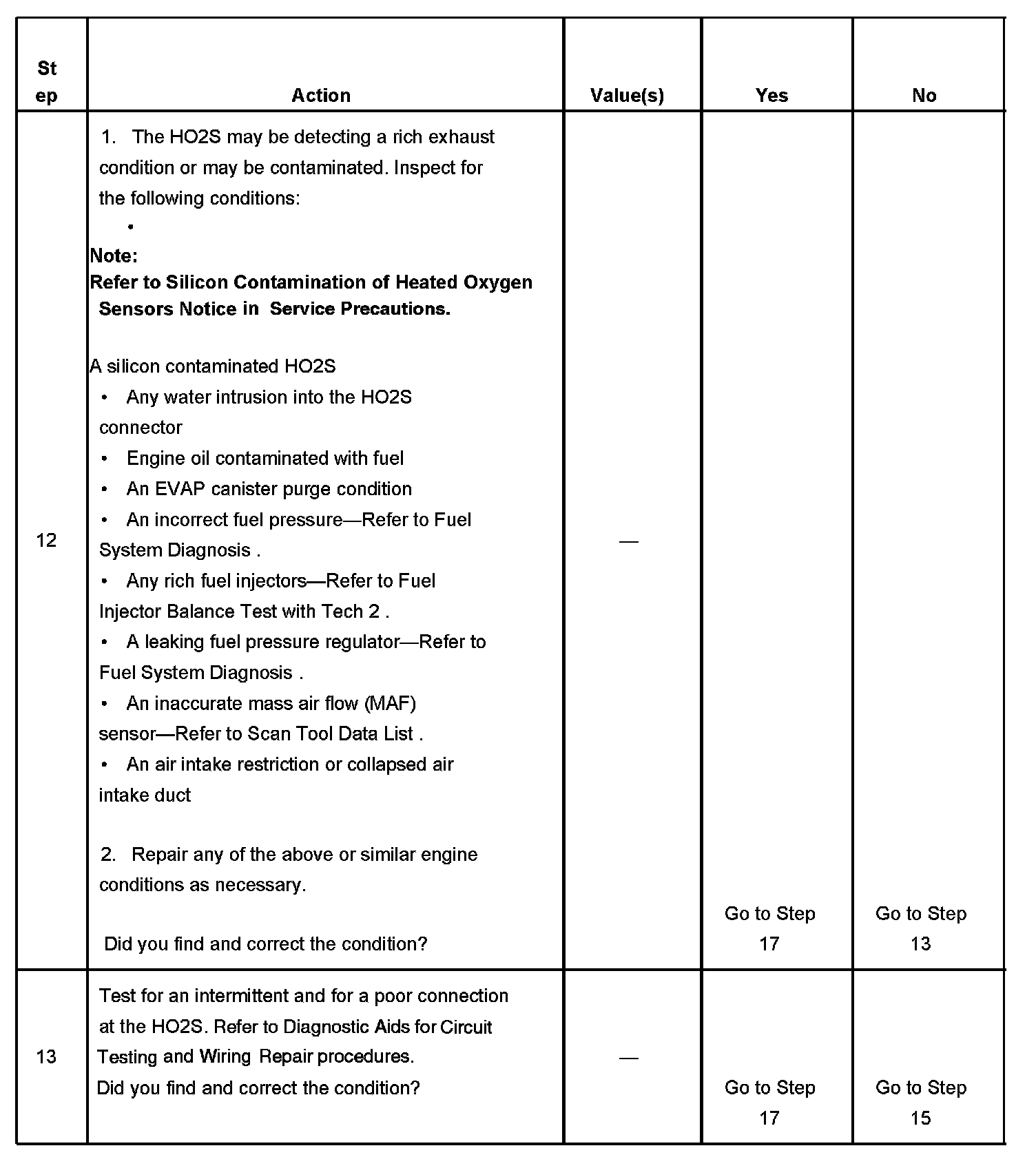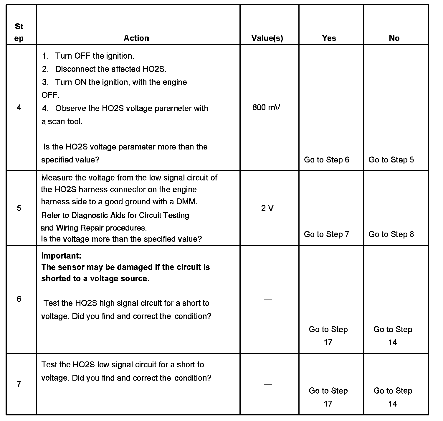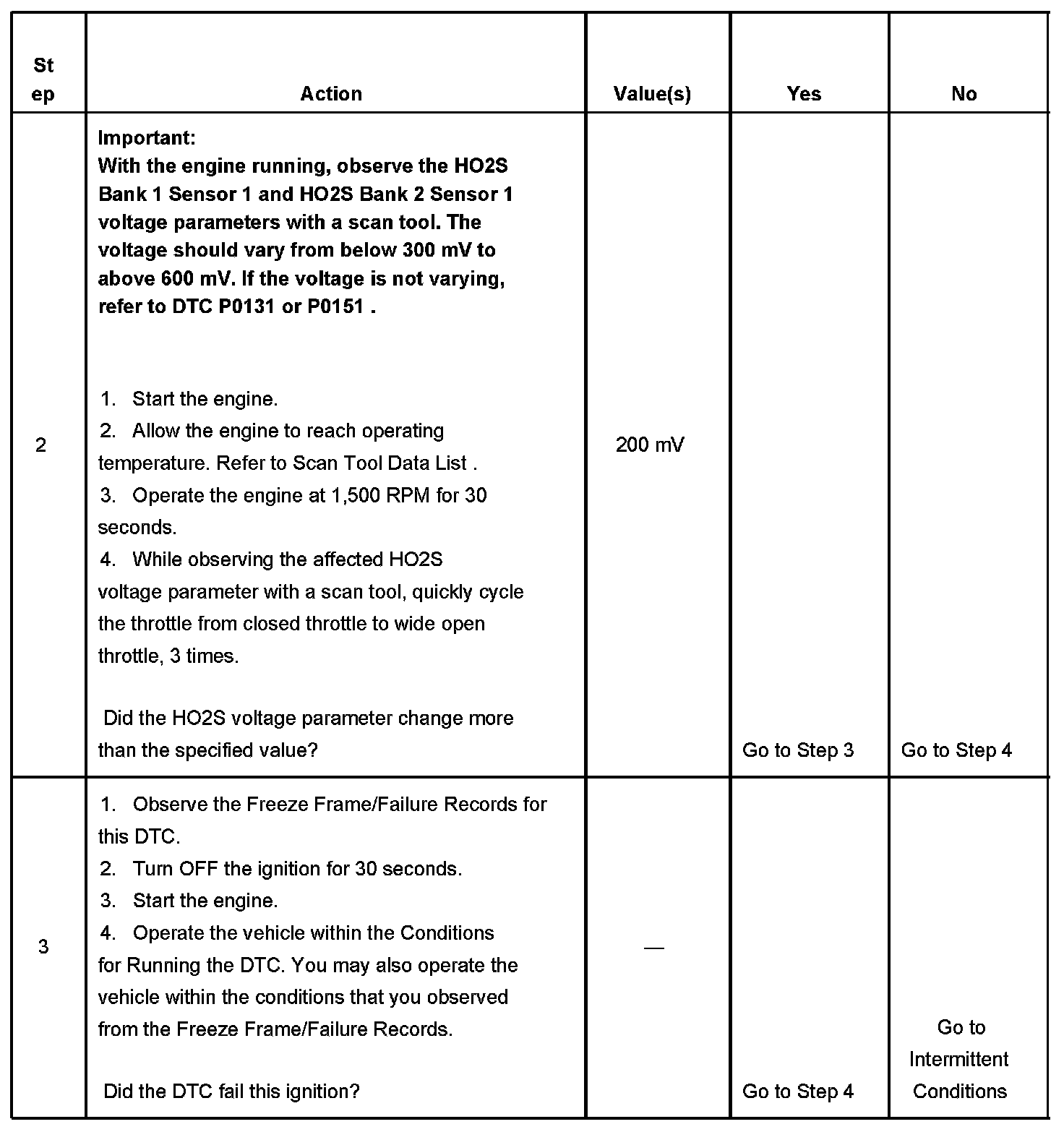 2. If the voltage does not change more that the specified value, the condition is present.