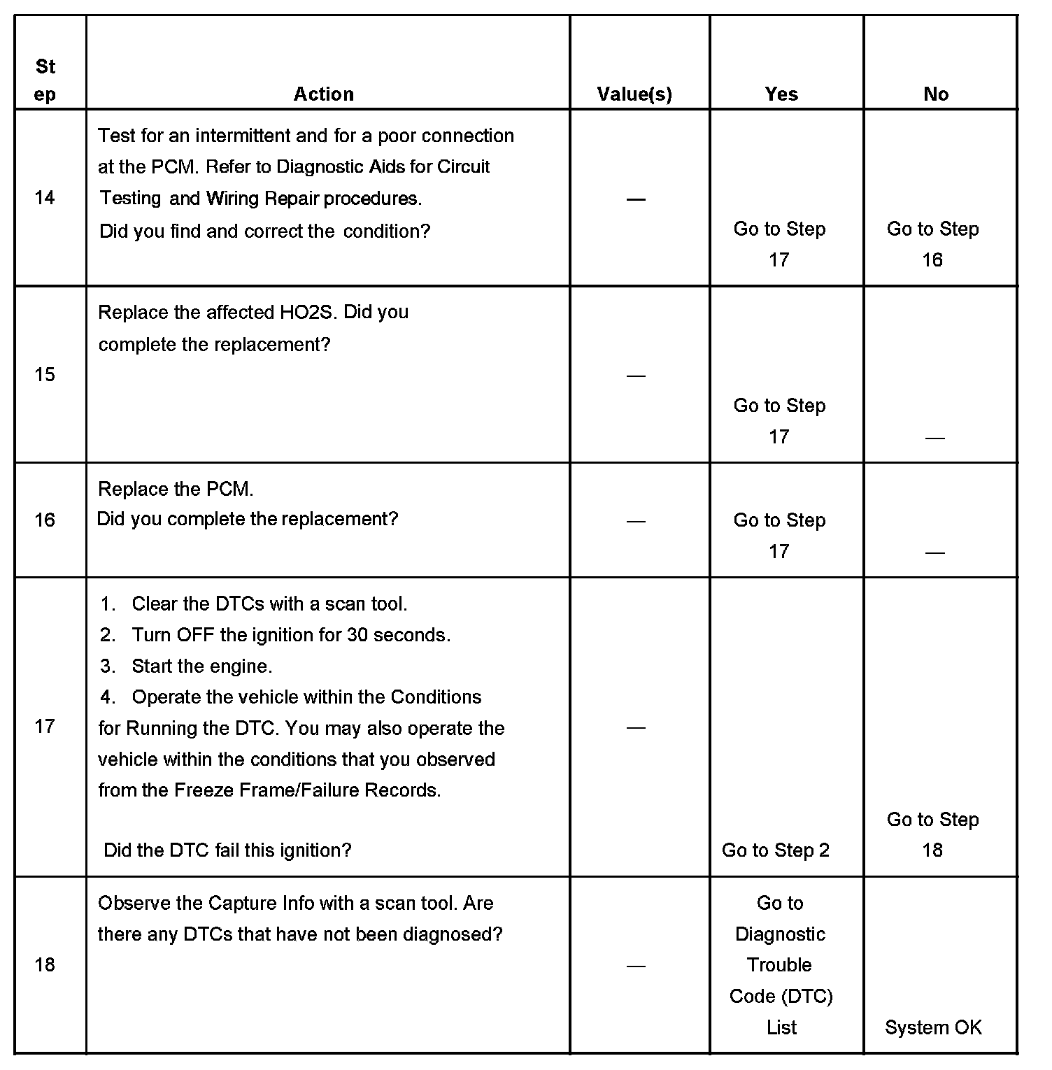 - A current DTC, Last Test Failed, clears when the diagnostic runs and passes.