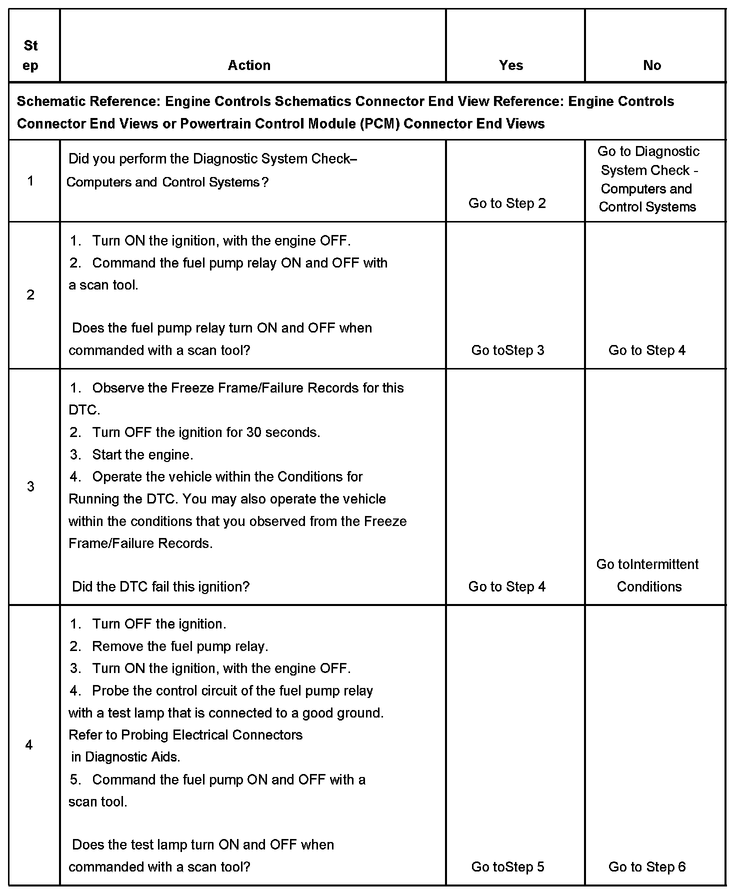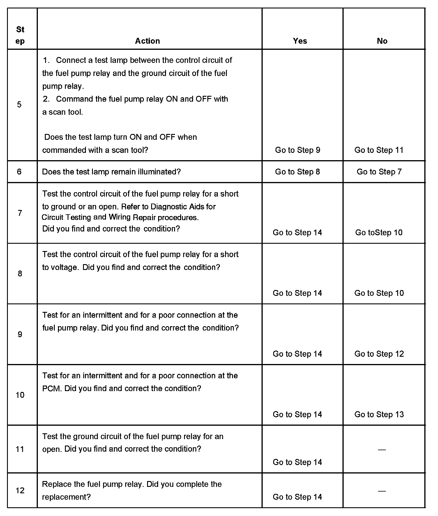 5. This step tests for an open in the ground circuit to the fuel pump relay.