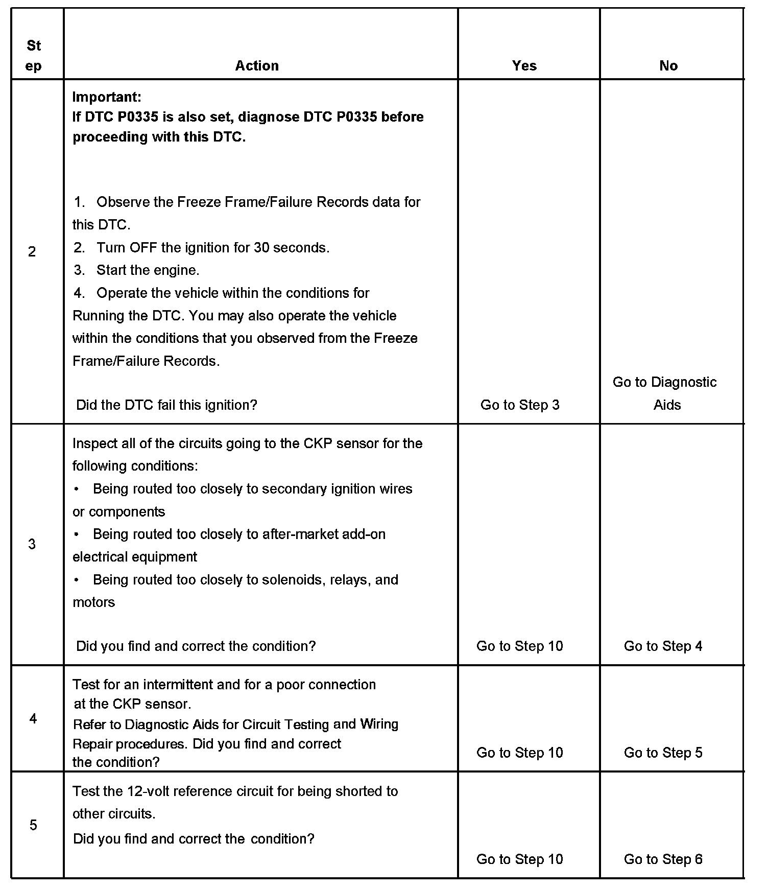 If the PCM detects that the CKP sensor signal is inconsistent for 2 seconds, DTC P0336 sets.