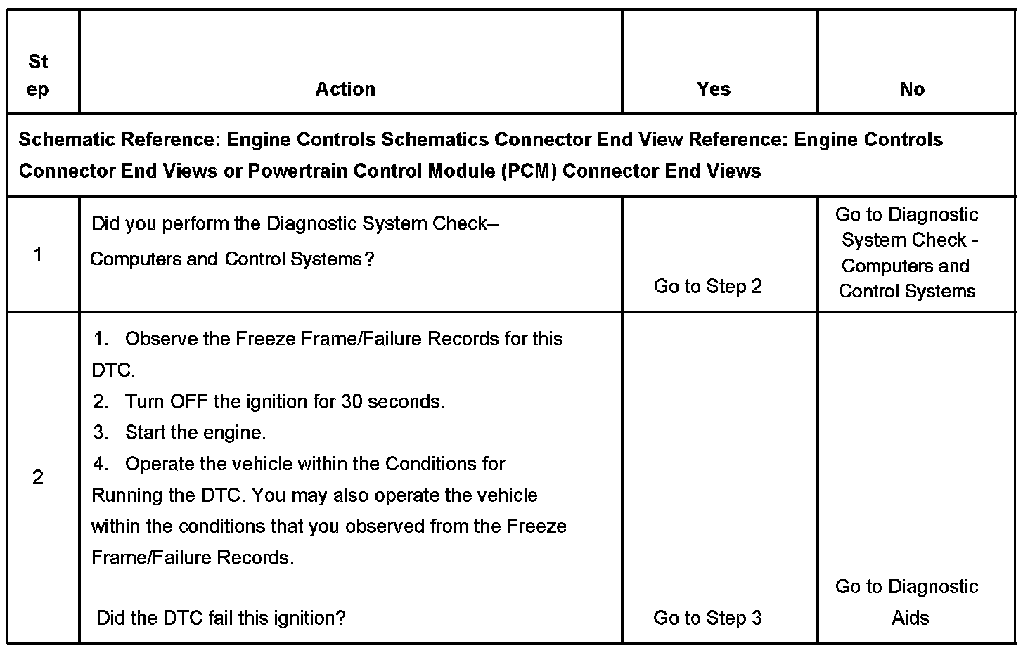 - The control module records the operating conditions at the time the diagnostic fails. The first time the diagnostic fails, the control module stores this information in the Failure Records. If the diagnostic reports a failure on the second consecutive ignition cycle, the control module records the operating conditions at the time of the failure. The control module writes the operating conditions to the Freeze Frame and updates the Failure Records.