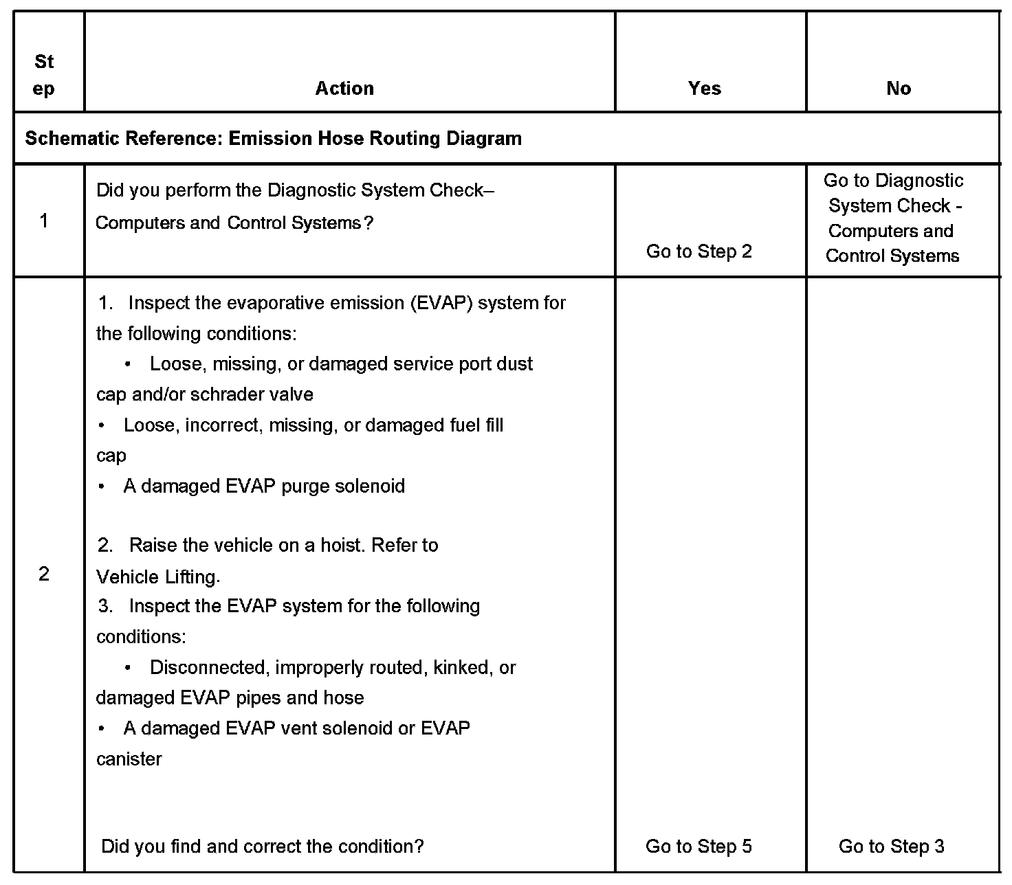 The numbers below refer to the step numbers on the diagnostic table.