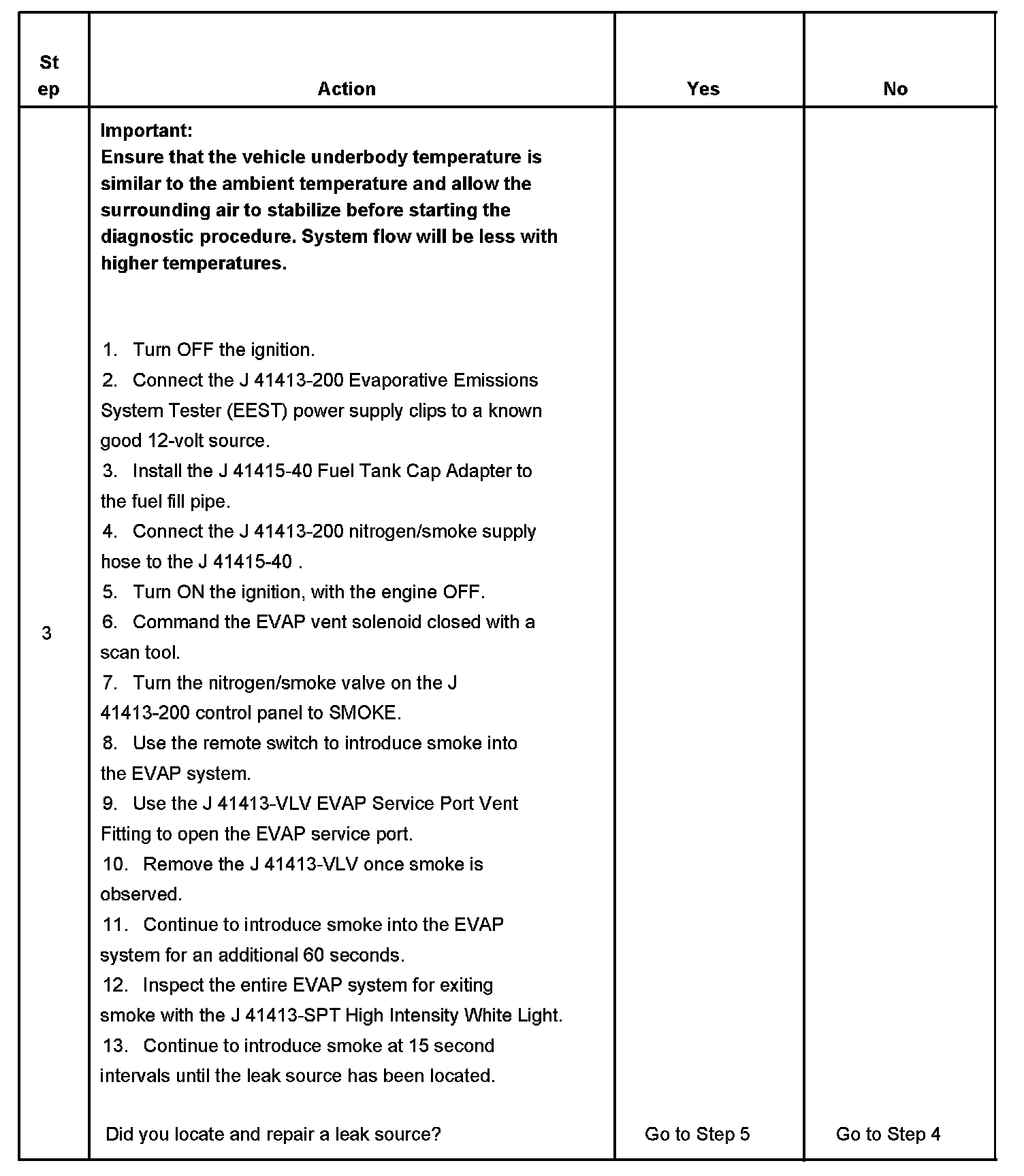 - To help locate intermittent leaks, use the J 41413-200 Evaporative Emissions System Tester (EEST) to introduce smoke into the EVAP system. Move all EVAP components while observing smoke with the J 41413-SPT High Intensity White Light.