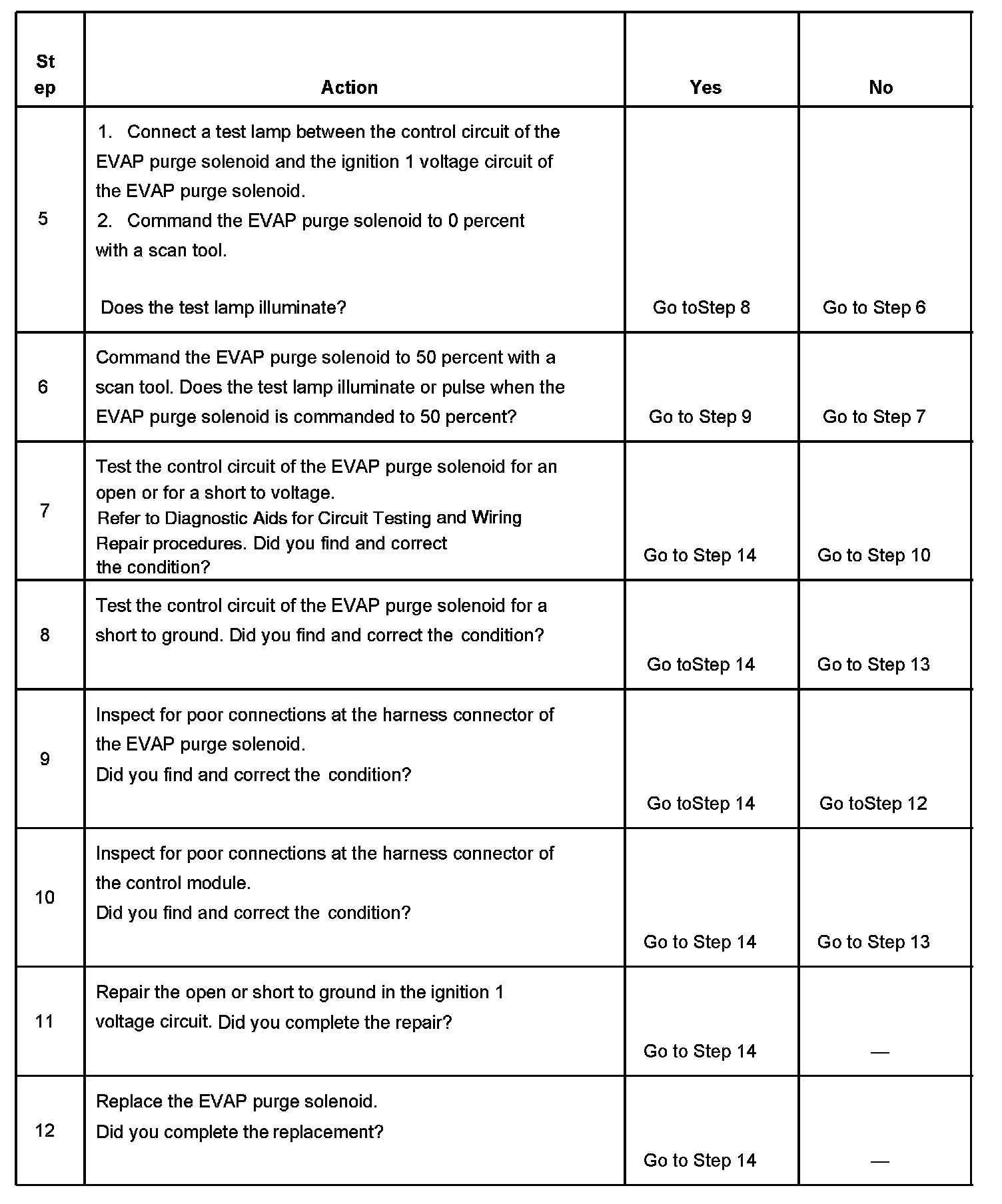 6. This step tests if a ground is constantly being applied to the EVAP purge solenoid.