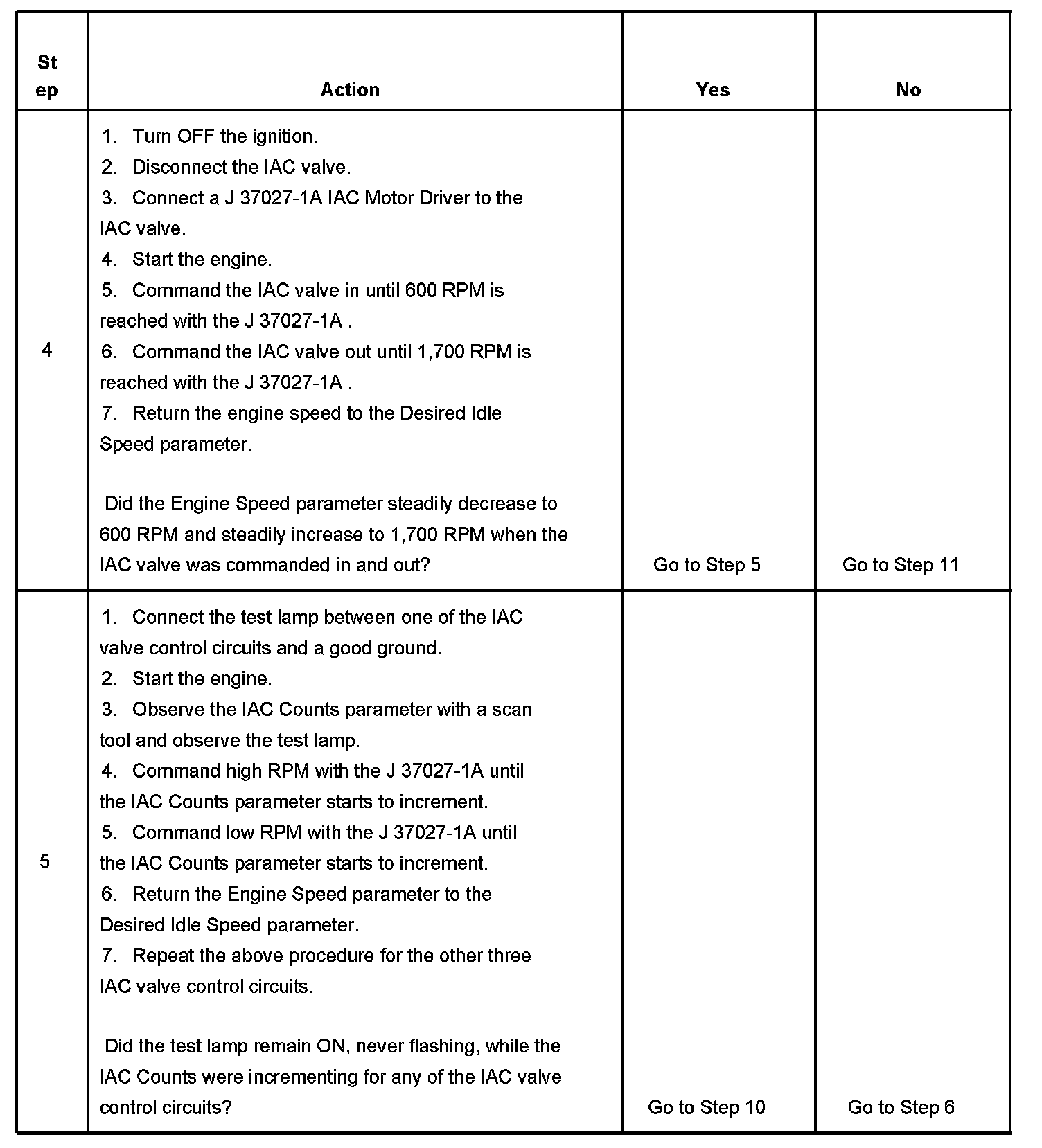 5. This test will determine the ability of the PCM and IAC valve control circuits to control the IAC valve.