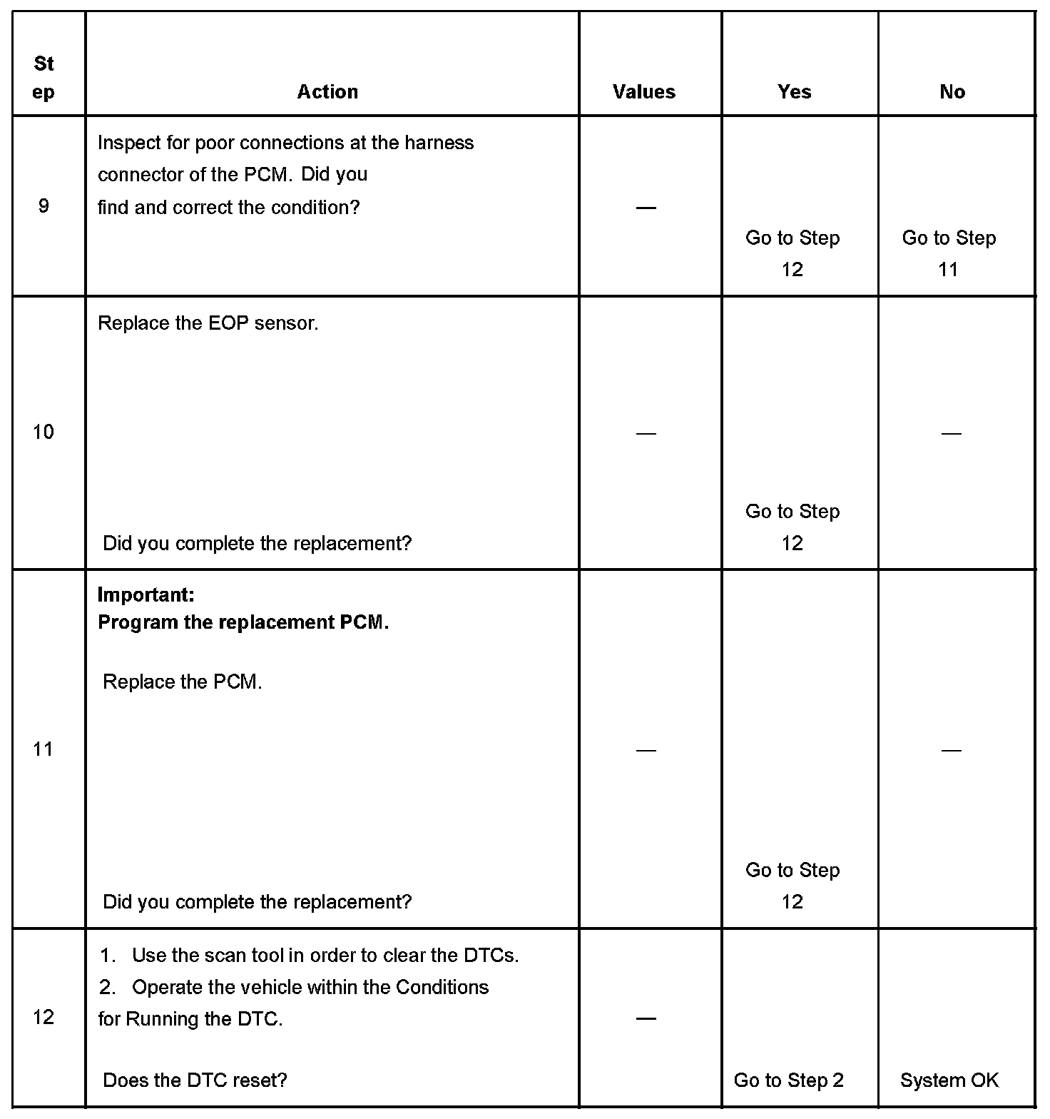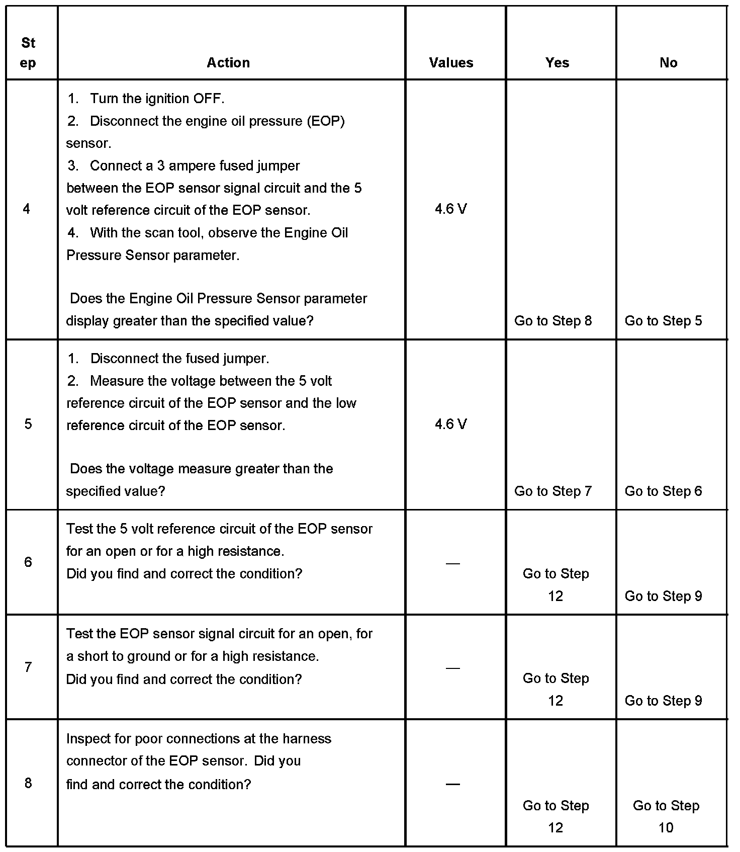 - The PCM detects that the EOP sensor signal circuit is less than 0.4 volts.