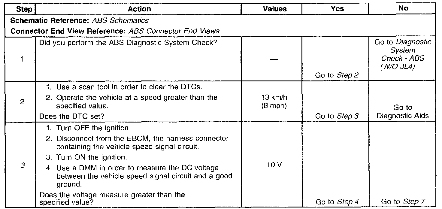 - The EBCM detects an open or shorted vehicle speed signal circuit for 500 milliseconds.