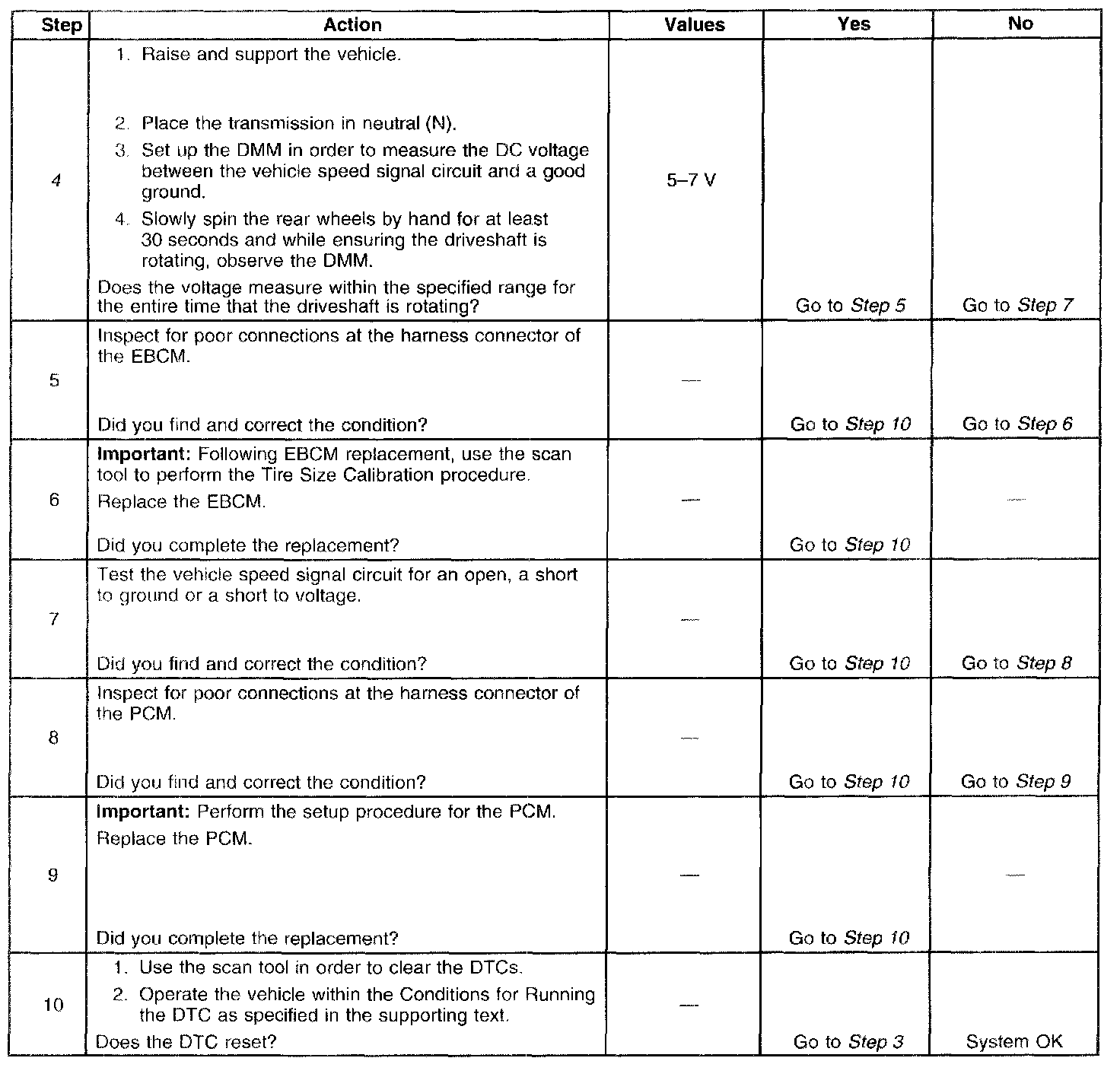 4. This step tests for a missing or erratic vehicle speed signal from the PCM. An assistant may be required to perform this test.