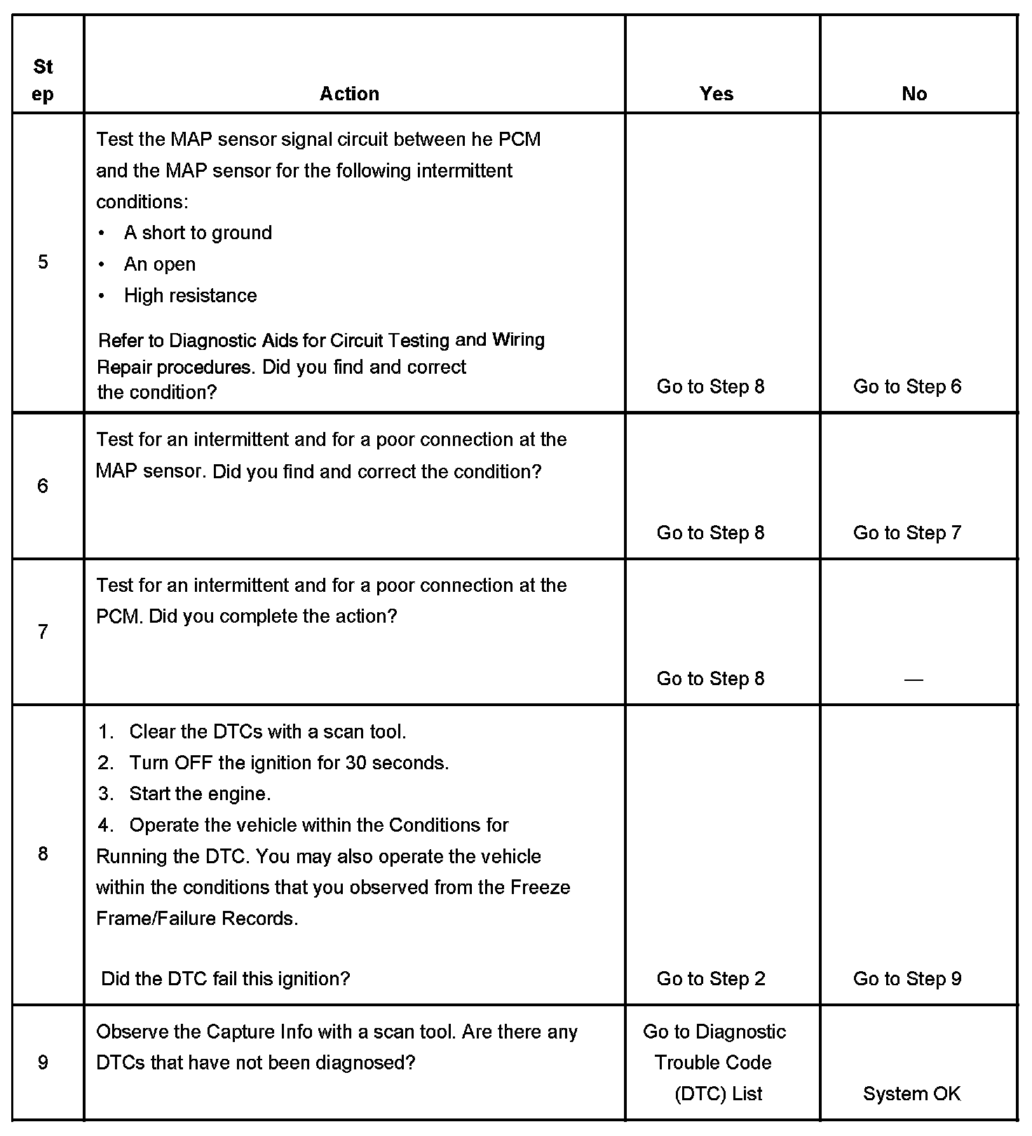 The number below refers to the step number on the diagnostic table.