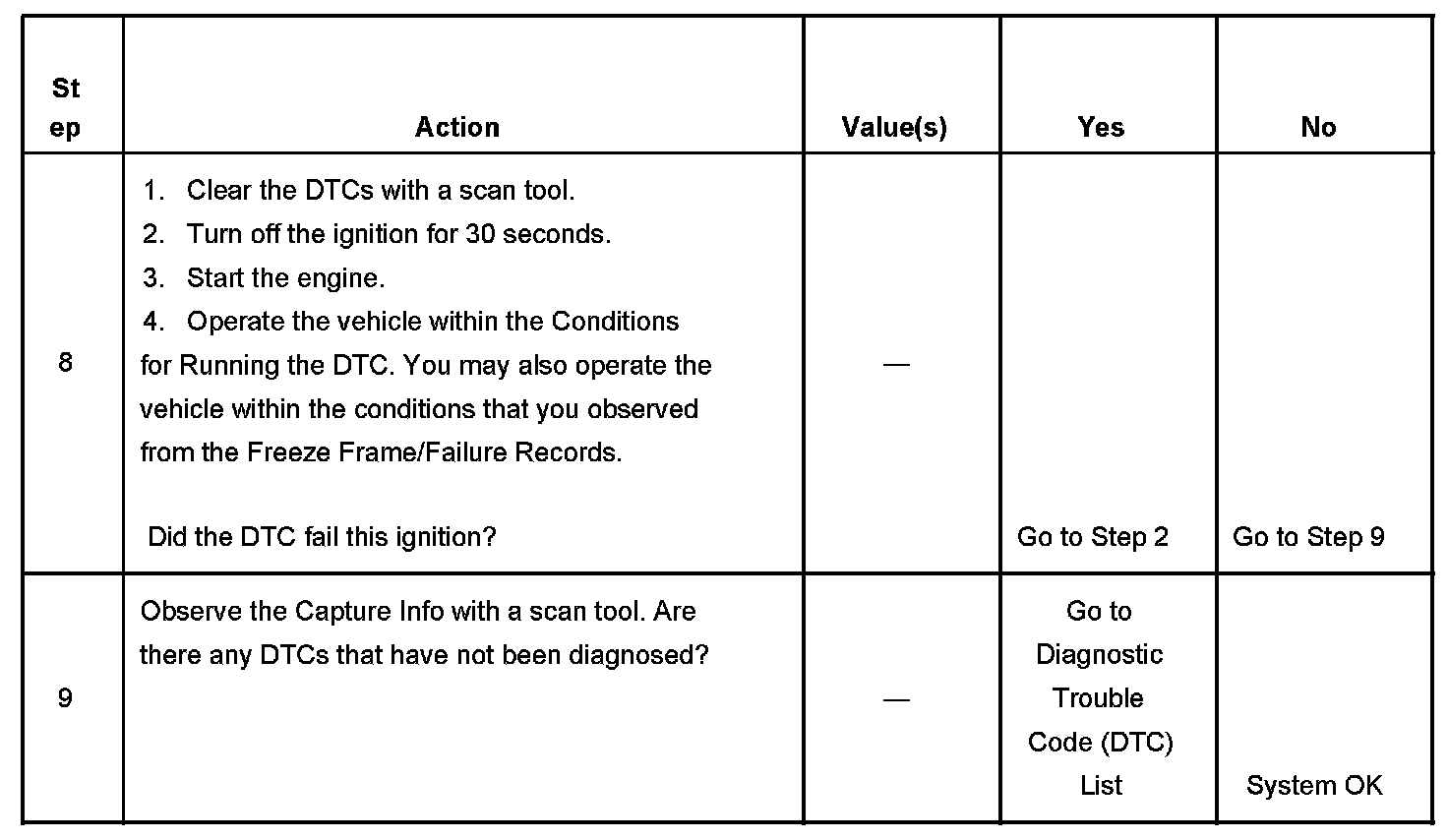 - A current DTC Last Test Failed clears when the diagnostic runs and passes.