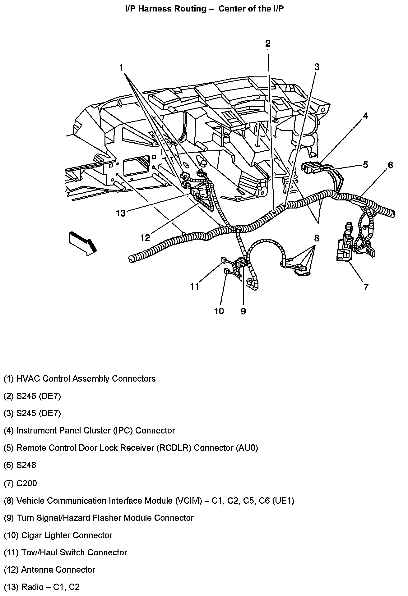 I/P Harness Routing - Center Of The I/P: