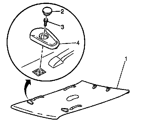 3. Remove the coat hook (4) fom the headliner (1).