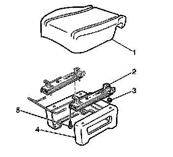 5. Remove the bolts retaining the seat adjuster to the seat cushion frame (1).