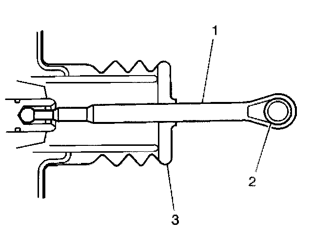 3. Reposition the pedal pushrod boot (3) toward the front of the vehicle to expose as much of the pedal pushrod (1) as possible.