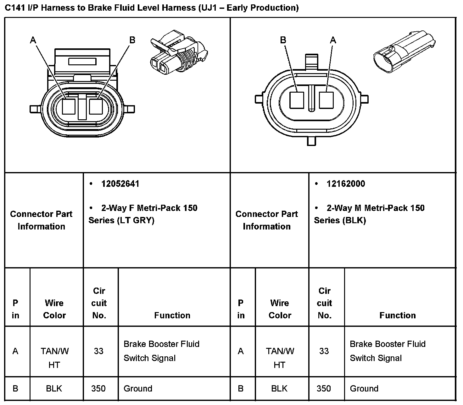 C141 I/P Harness To Brake Fluid Level Harness (With RPO Code UJ1 - Early Production):