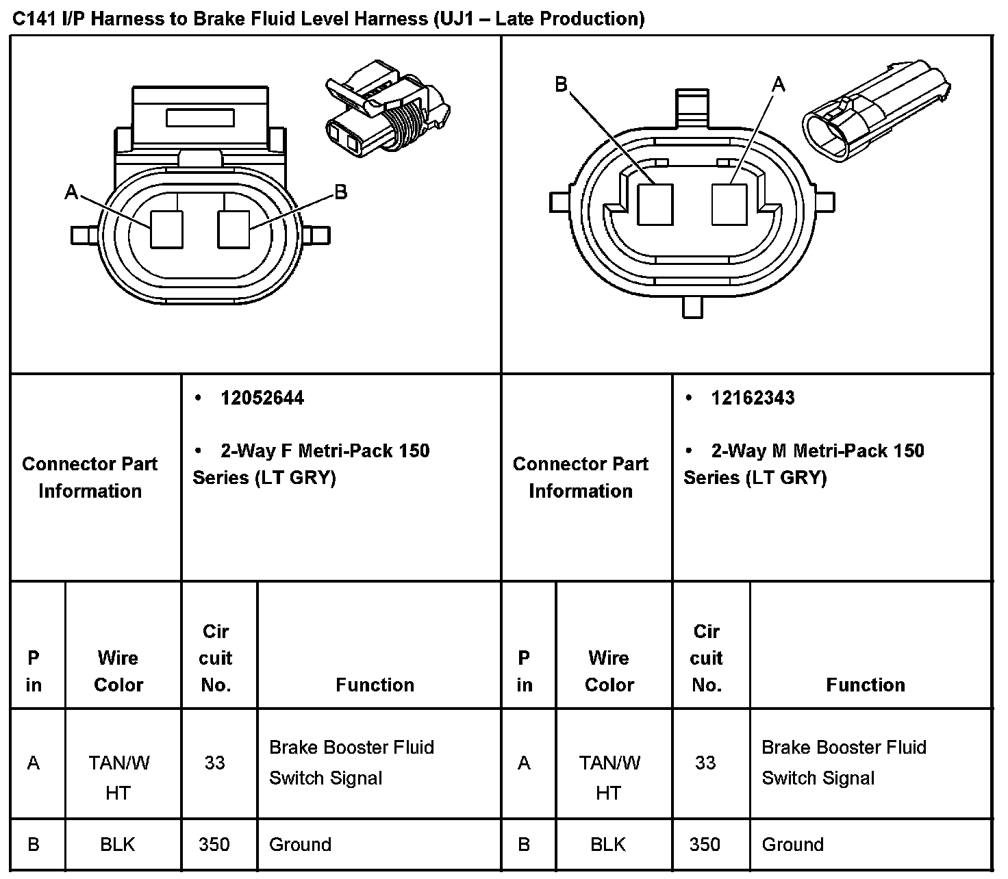 C141 I/P Harness To Brake Fluid Level Harness (with RPO Code UJ1 - Late Production):