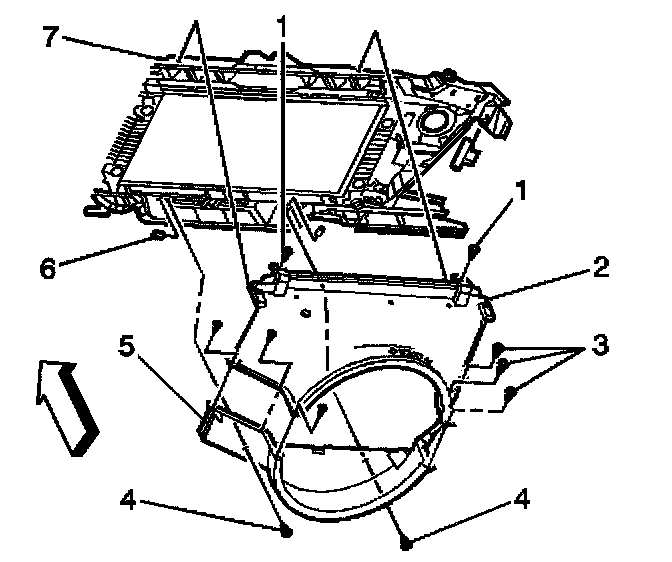 1. Install the fan shroud (2, 5).