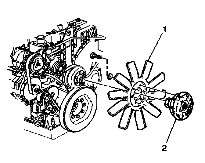 Notice: If a fan blade is bent or damaged, do not repair and use the damaged part. Replace a bent or damaged fan assembly with a new fan assembly. Using a fan with a different diameter, pitch, number of blades, or type of blade material may effect the cooling efficiency, performance and engine noise level.