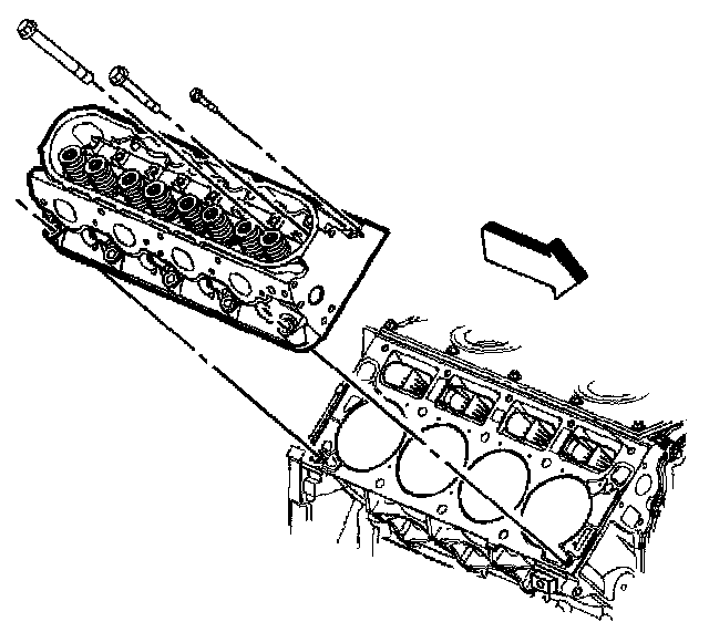 Notice: Clean all dirt, debris, and coolant from the engine block cylinder head bolt holes. Failure to remove all foreign material may result in damaged threads, improperly tightened fasteners or damage to components.