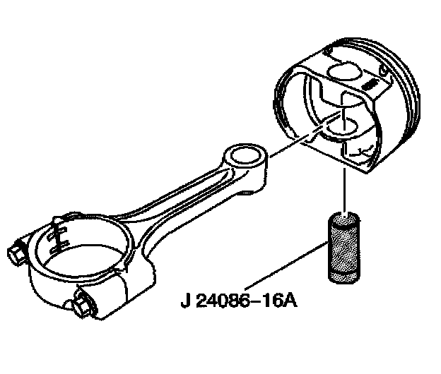4. Assemble the piston, connecting rod and adapter J 24086-16A and install onto fixture J 24086-10.