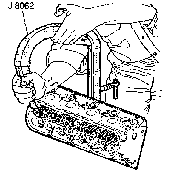 2. Use the J 8062 in order to compress the valve spring.