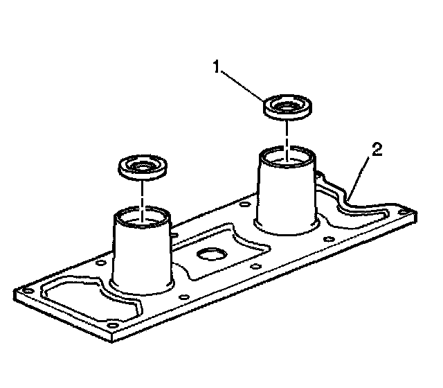 1. Remove the knock sensor oil seals (1) from the valley cover (2).