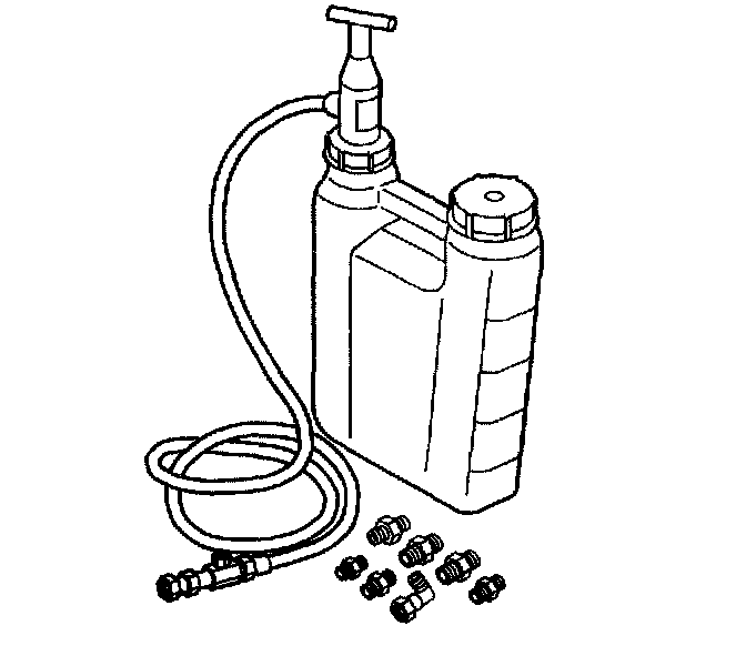 5. Pump the handle on the J 45299 in order to flow a minimum of 1-1.9 liters (1-2 quarts) engine oil.