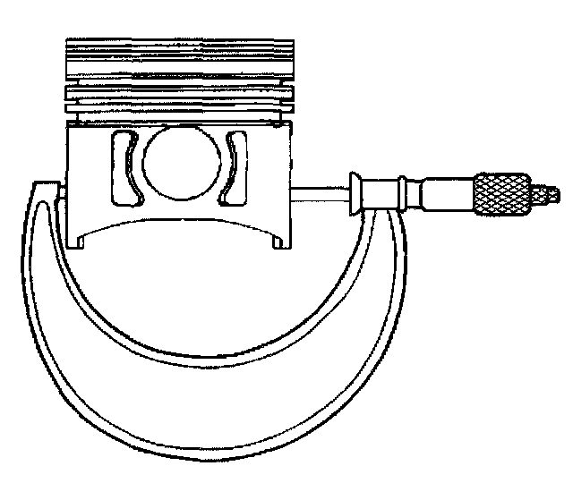 3. With the micrometer at a right angle to the piston, measure the piston. Measure 4.8L and 5.3L pistons 43 mm (1.69 inch) from the crown.