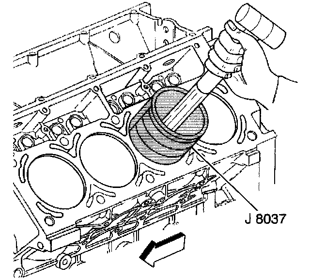 5. Install the J 8037 onto the piston and compress the piston rings.