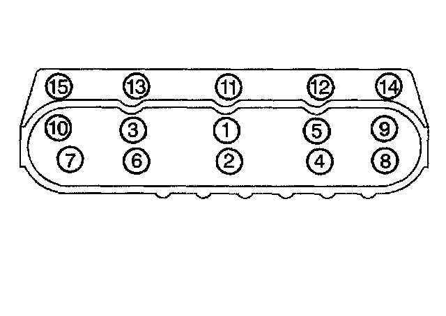 8.4. Tighten the Me cylinder head bolts (11, 12, 13, 14, 15) to 30 Nm (22 ft. lbs.). Begin with the center bolt (11) and alternating side-to-side, work outward tightening all of the bolts