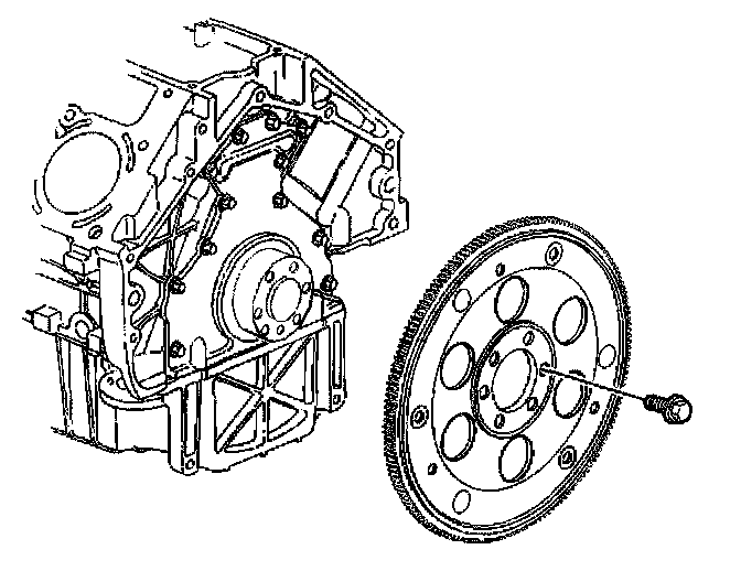 3. Apply threadlock GM P/N 12345382 (Canadian P/N 10953489) or equivalent to the threads of the flywheel bolts.