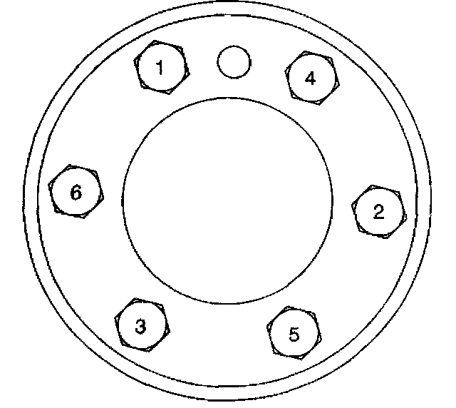 4.1. Tighten the engine flywheel bolts first pass in sequence to 20 Nm (15 ft. lbs.).