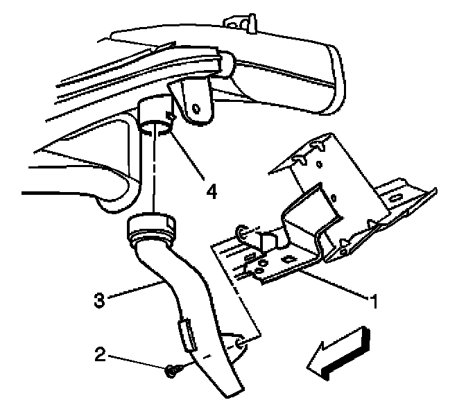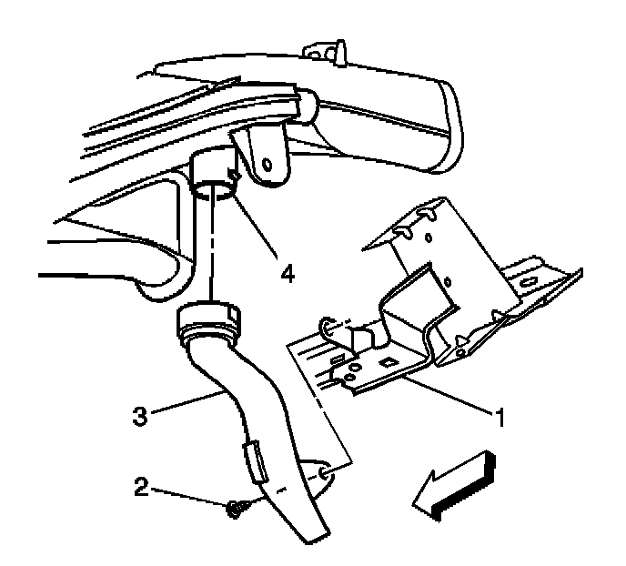 1. Remove the lower air outlet duct screw (2) from the I/P bracket (1).